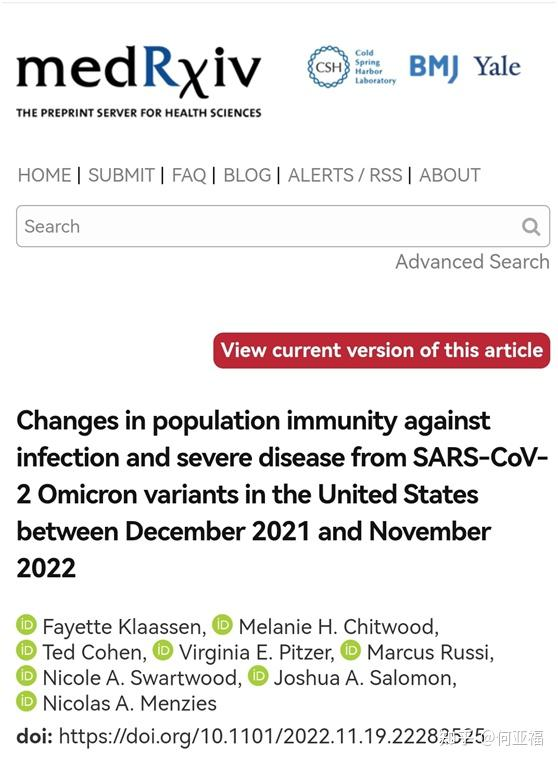 然而,2022年11月20日,由哈佛、耶鲁和斯坦福三所美国知名大学的公卫学院在medRxiv上传了美国人群针对Omicron免疫防御的最新研究进展,标题是“Changes in population immunity against infection and severe disease from