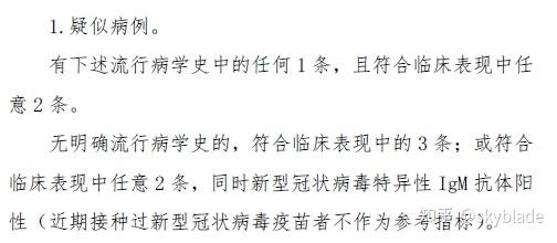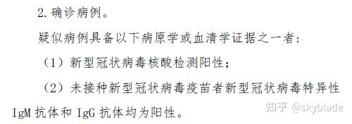 可以看出,无症状感染者在防控方案里的定义还是很明确的。确诊和疑似病例定义按诊疗方案。疑似病例,似乎是一个很久没有听说的名词了,似乎从我们生活中消失了。那让我们看看诊疗方案吧。先看大家熟悉的确诊病例: